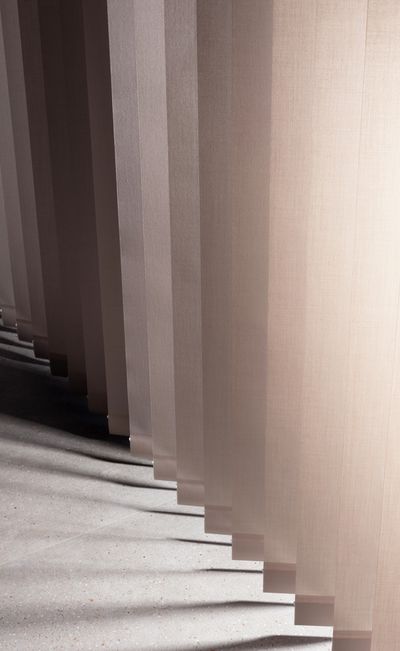 Los sistemas de bandas verticales combinan diseño y tecnología, un sistema elegante que permite controlar la cantidad de luz que penetra en la estancia. Son muy adecuados para ventanas que van del suelo al techo o como separador de estancias. Además de bandas verticals rectas, ofrecemos bandas de ondas verticales: 3 bandas cortadas con láser (Design Eva Marmbrandt) para añadir un giro contemporáneo. Le ofrecemos la exclusiva e impresionante onda vertical 3D. Combinando los métodos de estampado con cualqier color, proporcionamos efectos impresionantes y llamativos por medio del sistema.